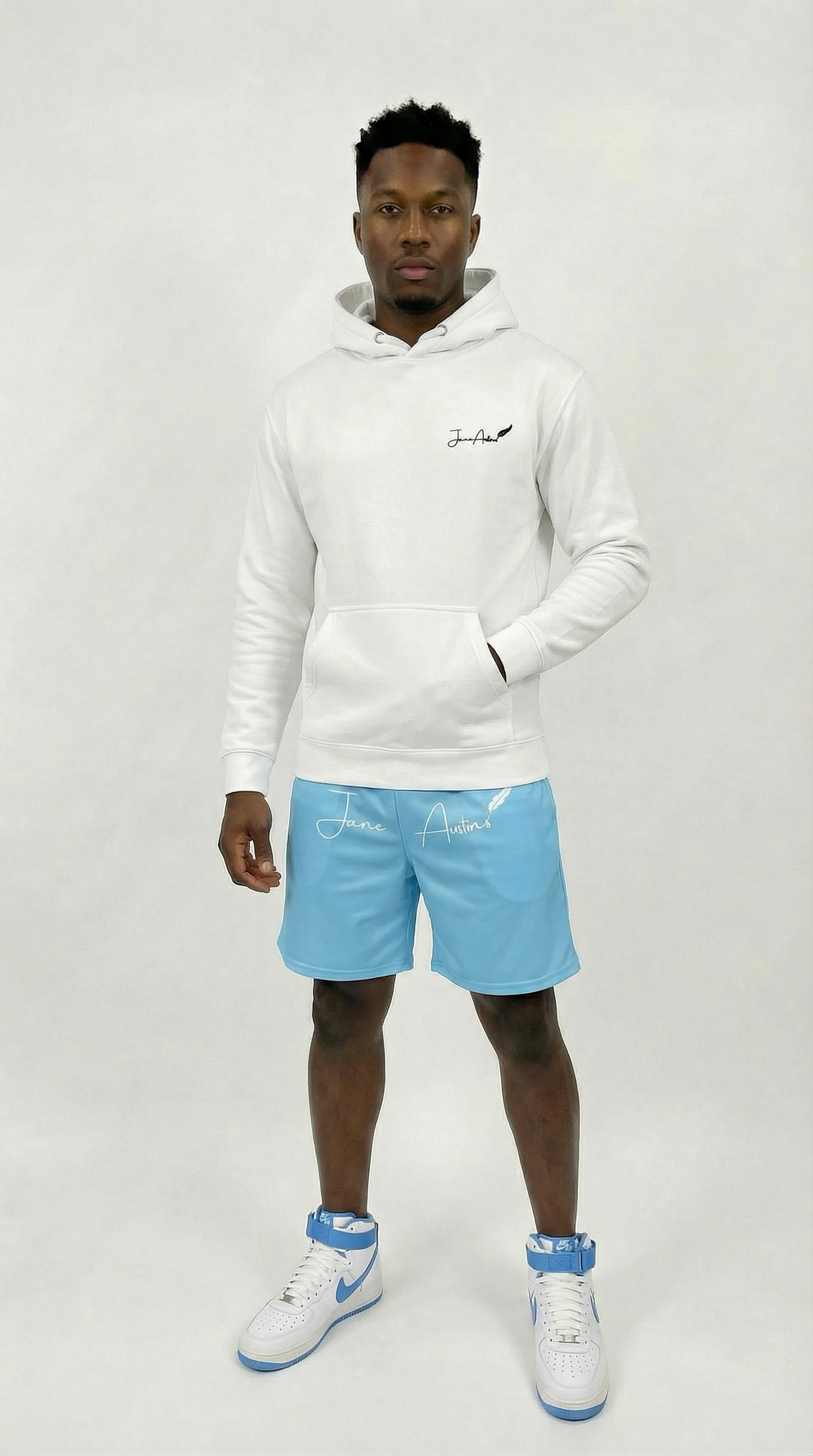 • Elastic waistband with flat white drawstring